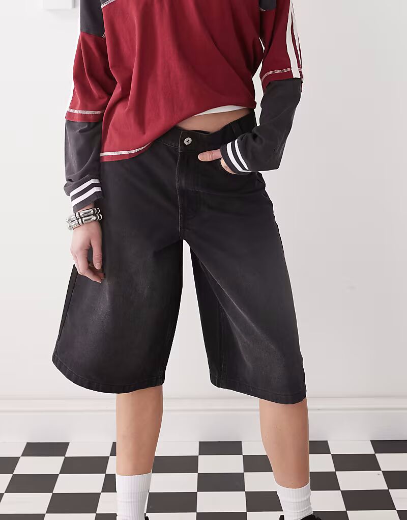 Джинсовые шорты COLLUSION черного цвета с потертостями