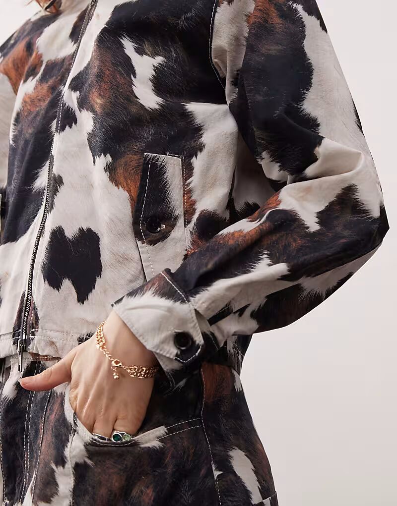 Reclaimed Vintage - куртка на молнии с коровьим принтом