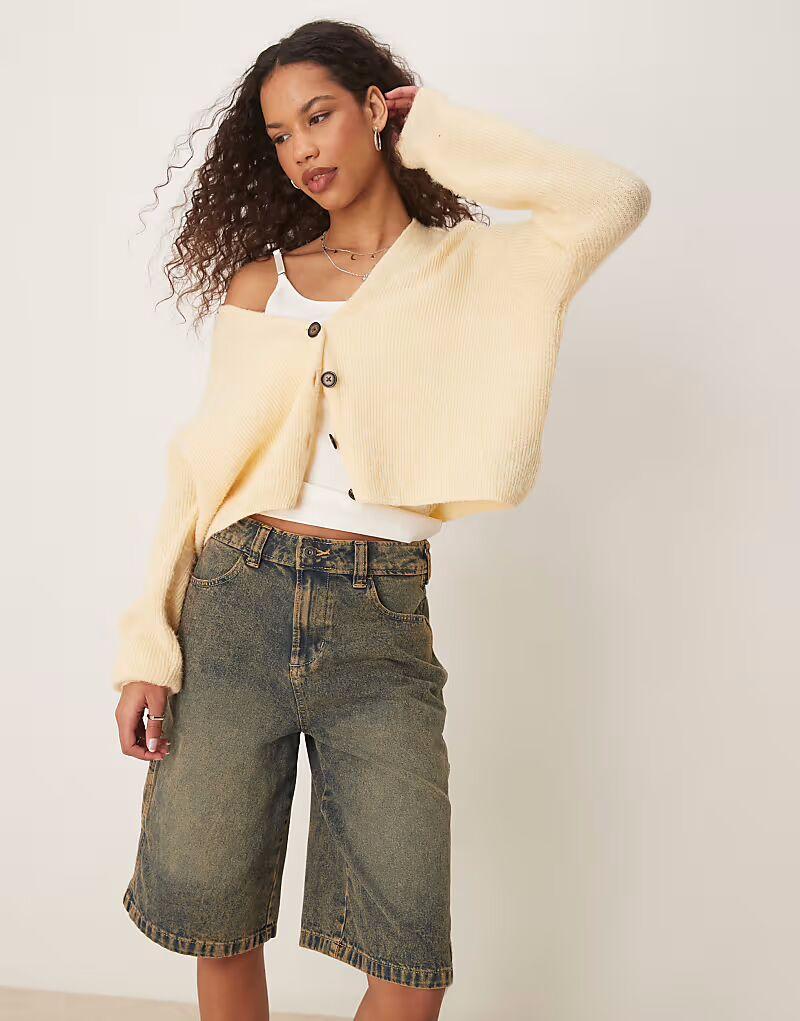 Плотницкие шорты Dickies из денима цвета индиго с желтым выцветанием