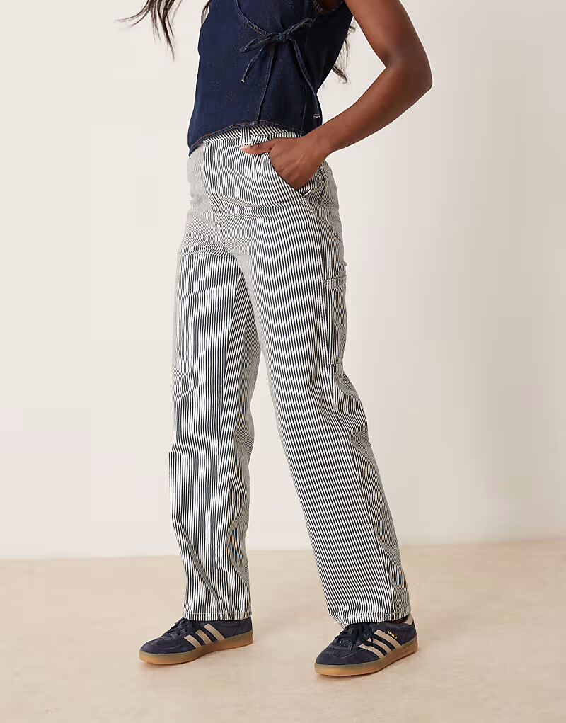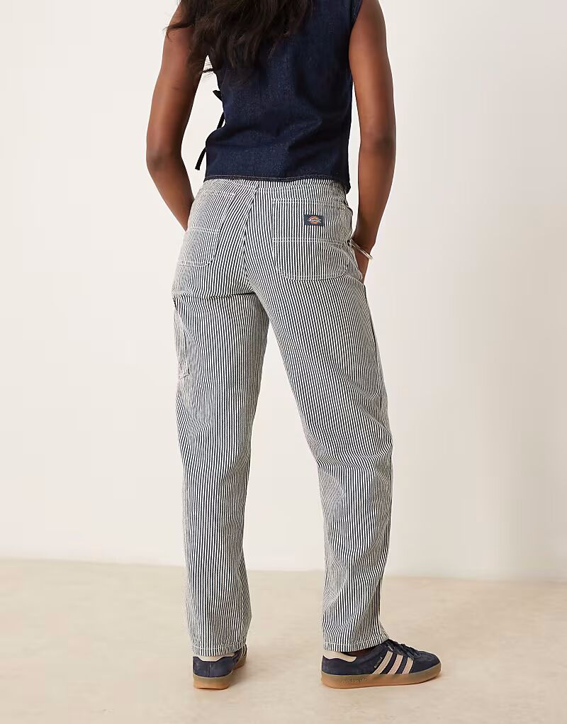 Плотницкие брюки Dickies из денима в полоску цвета гикори темно-синего цвета