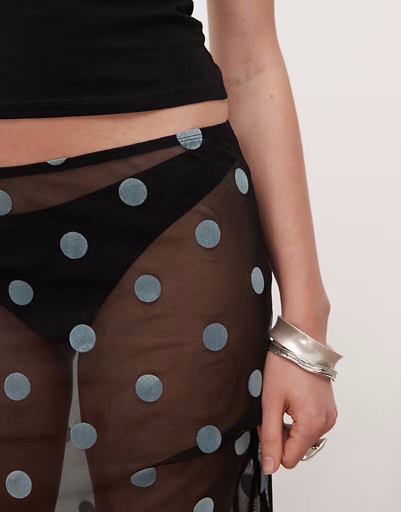 Юбка из прозрачной сетки COLLUSION черного цвета в горошек