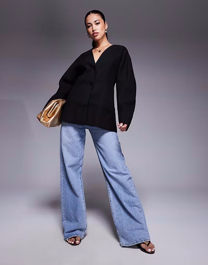 Строгий блейзер ASOS DESIGN из черного фактурного льна, комплект 8 631₽
