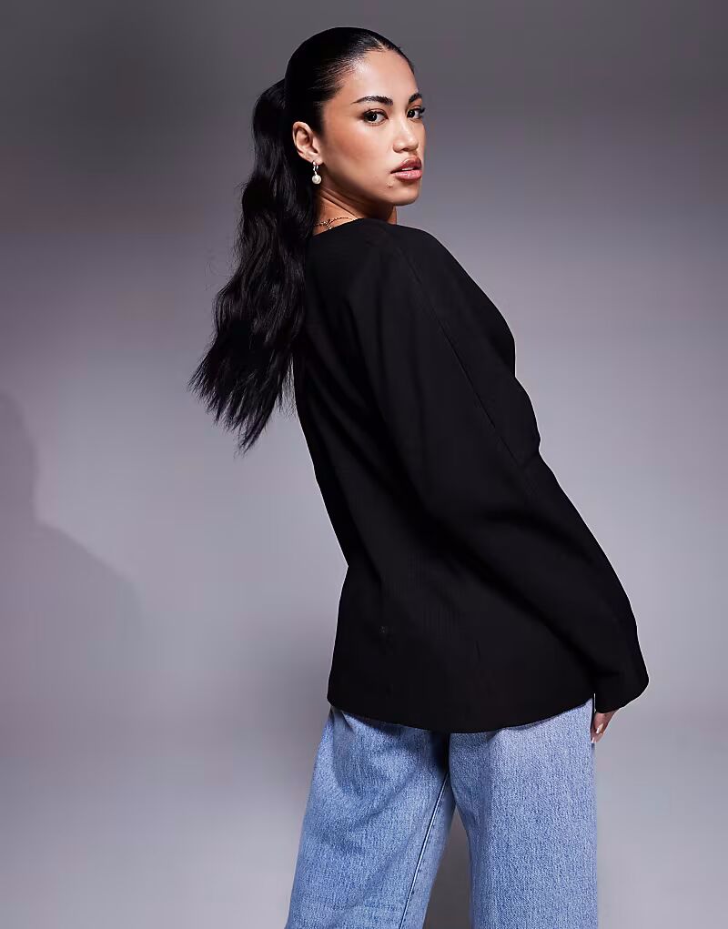 Строгий блейзер ASOS DESIGN из черного фактурного льна, комплект