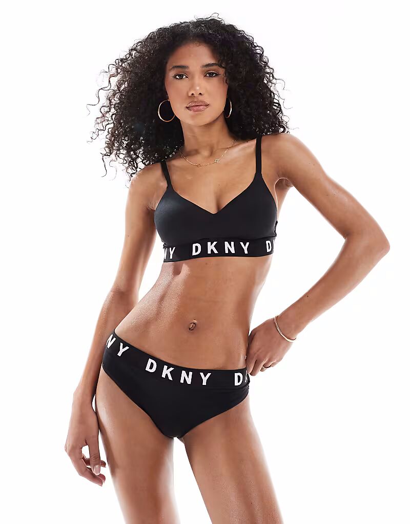 Бюстгальтер DKNY Push-up черного цвета с белым логотипом