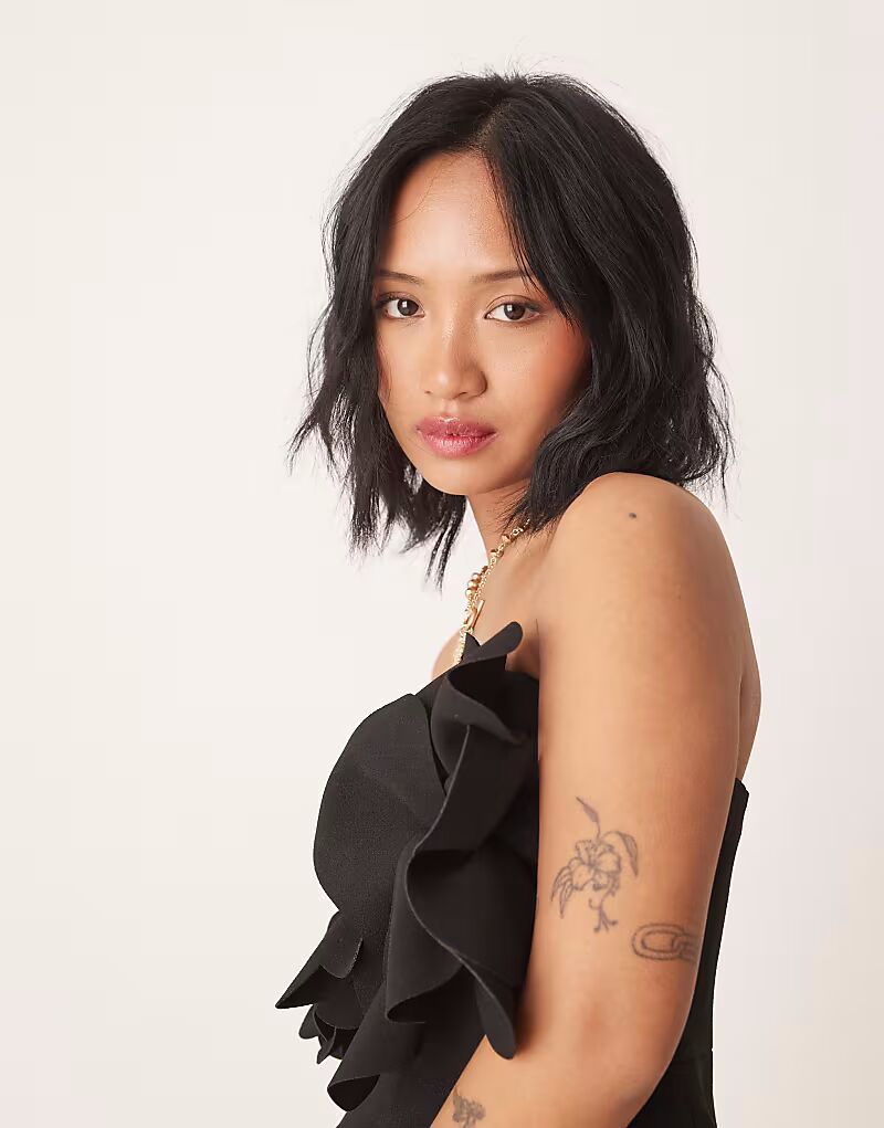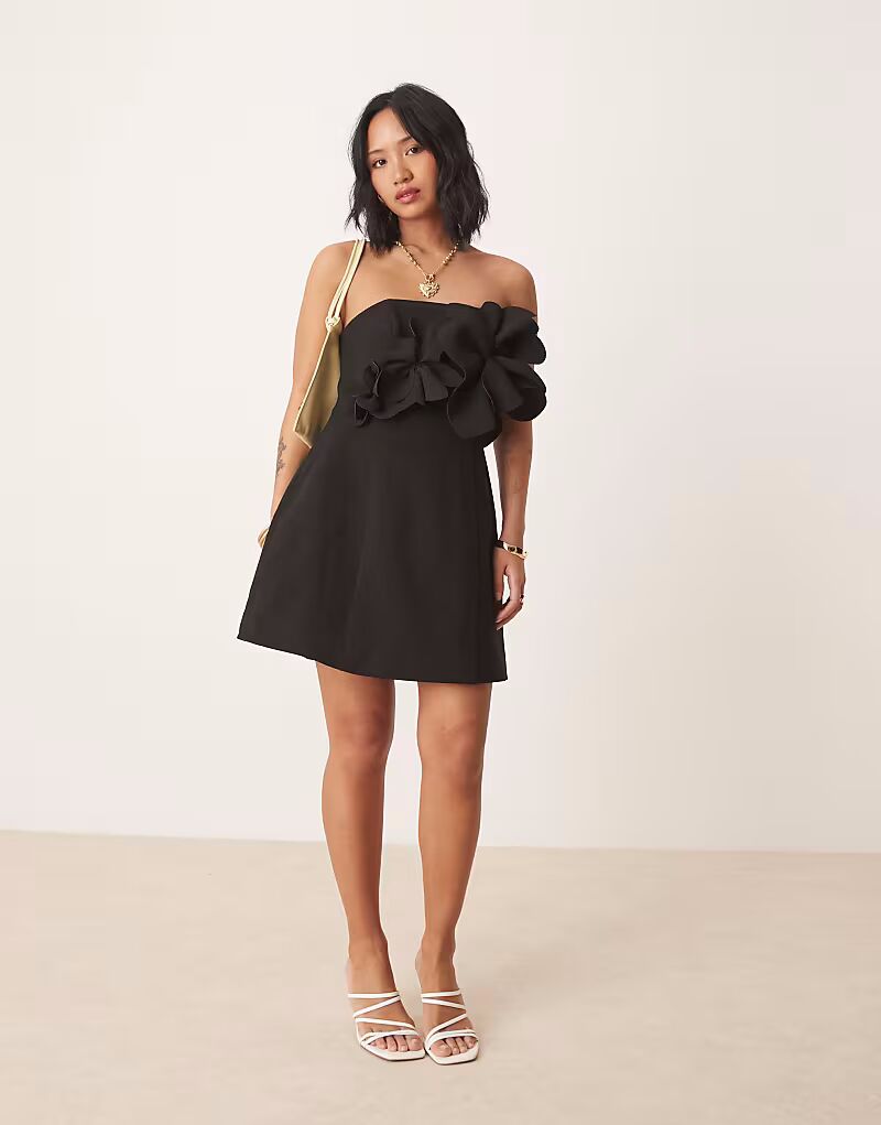 Мини-платье Forever New Petite с 3D-цветочным принтом черного цвета