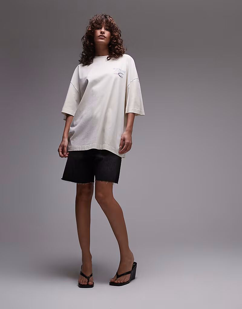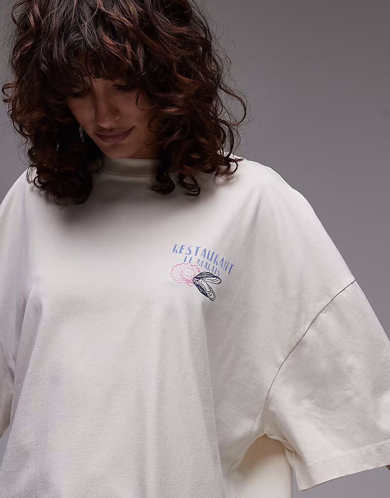 Футболка Topshop oversize с принтом устрицы цвета экрю
