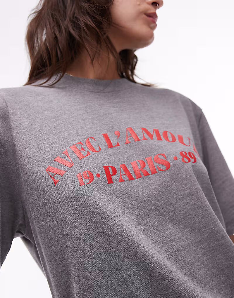 Футболка Topshop Premium Basic серого цвета с графикой «Париж 1989»