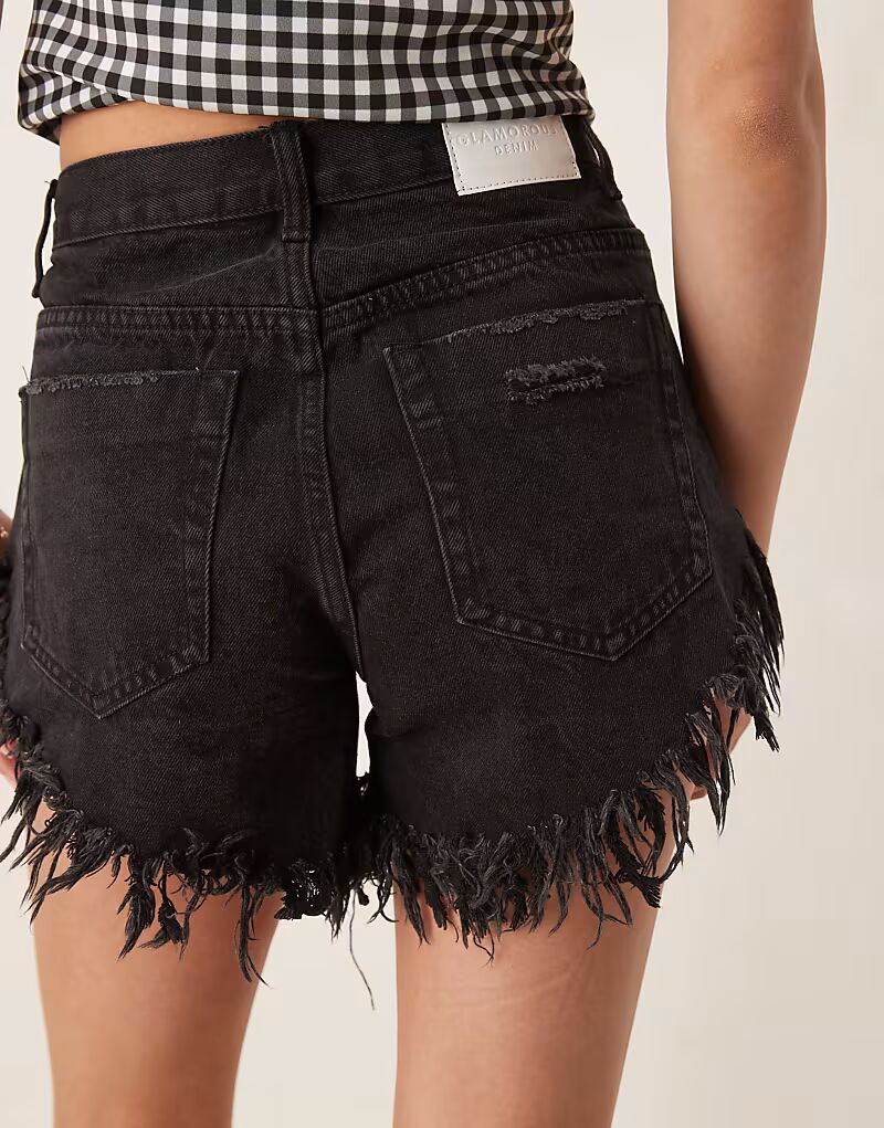 Гламурные черные джинсовые шорты черного цвета Glamorous