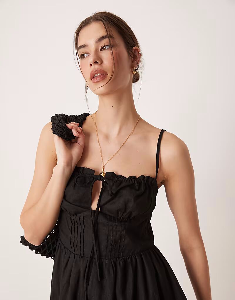 Гламурное платье миди с завязками спереди черного цвета Glamorous 7 749₽