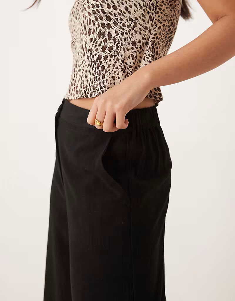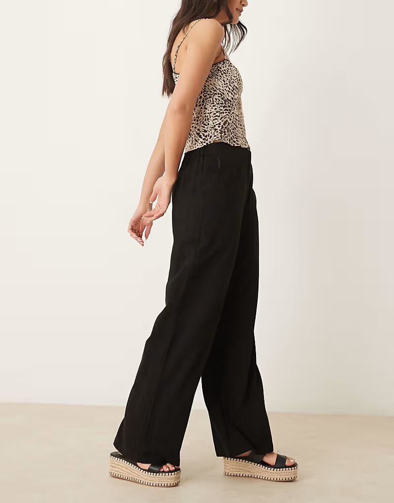 Свободные брюки прямого кроя ASOS DESIGN черного цвета с льном