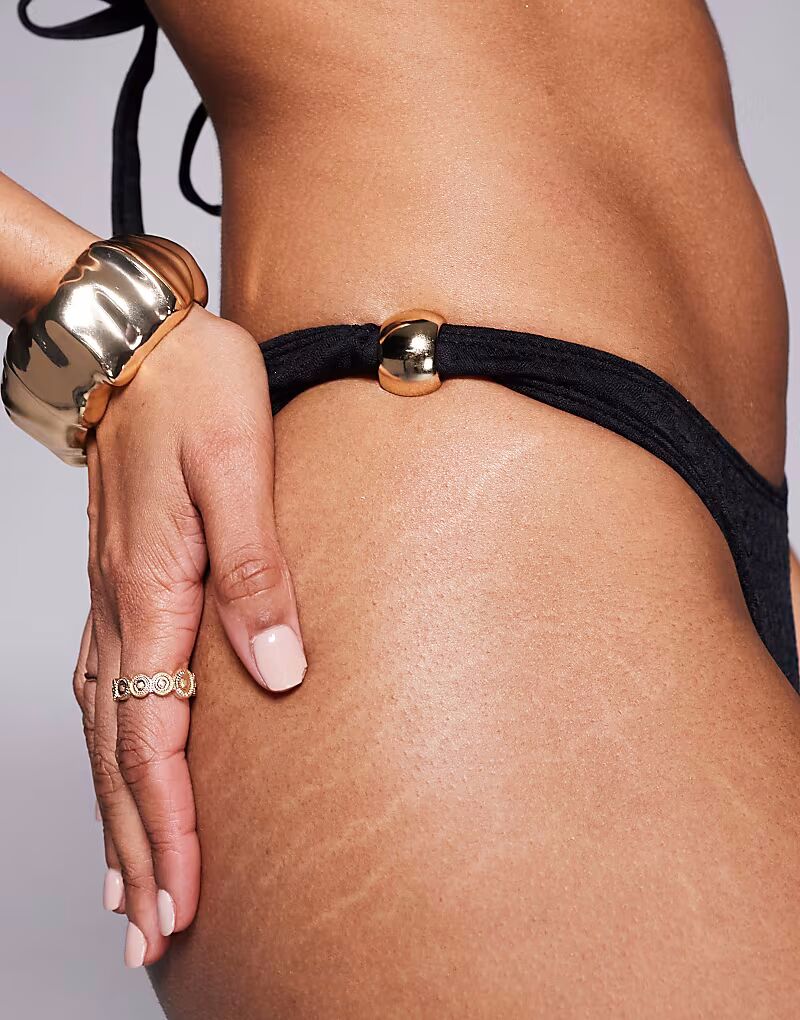 Бикини-стринги ASOS DESIGN Tayla черного цвета с золотыми бусинами