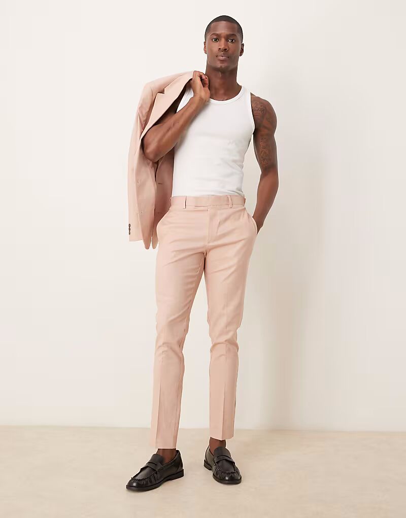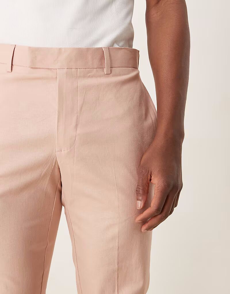 ASOS DESIGN облегающие брюки из розового льна