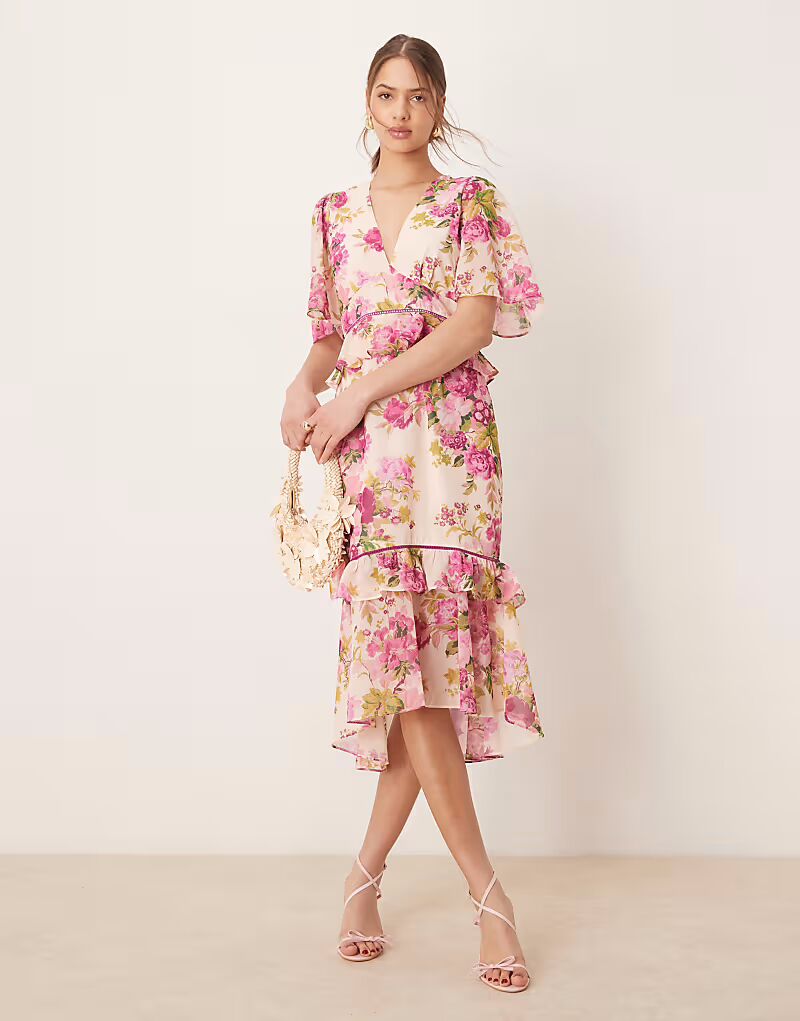 Платье миди Hope & Ivy с баской на талии и розовым принтом 8 416₽