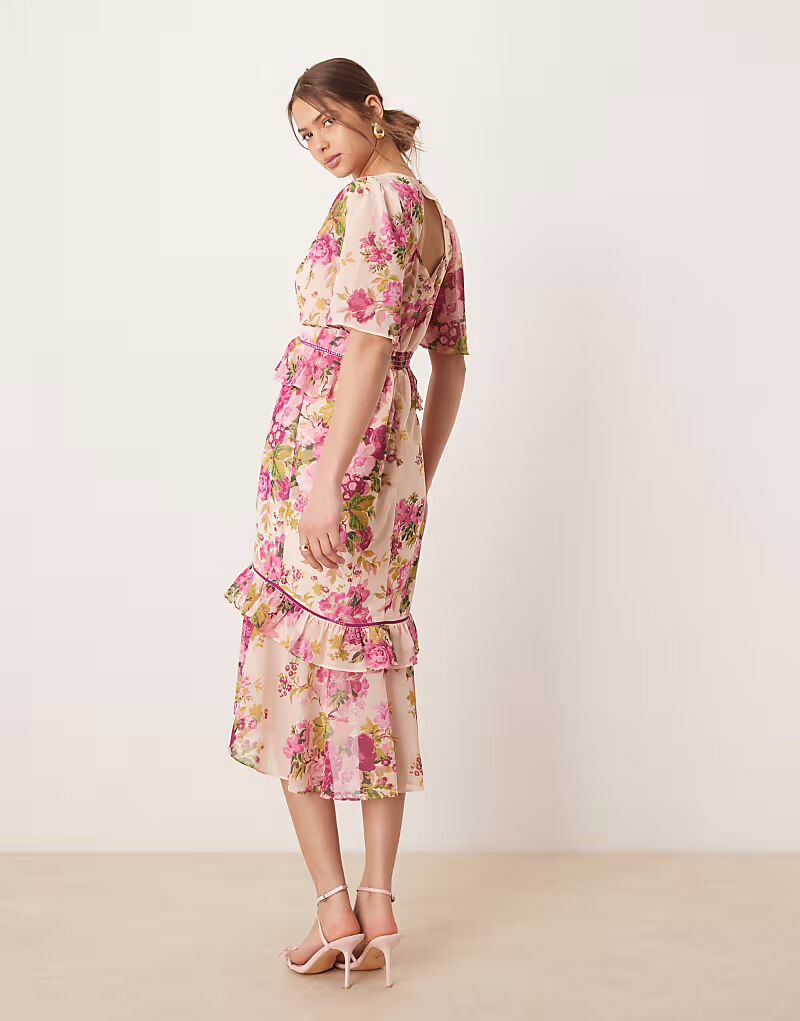 Платье миди Hope & Ivy с баской на талии и розовым принтом