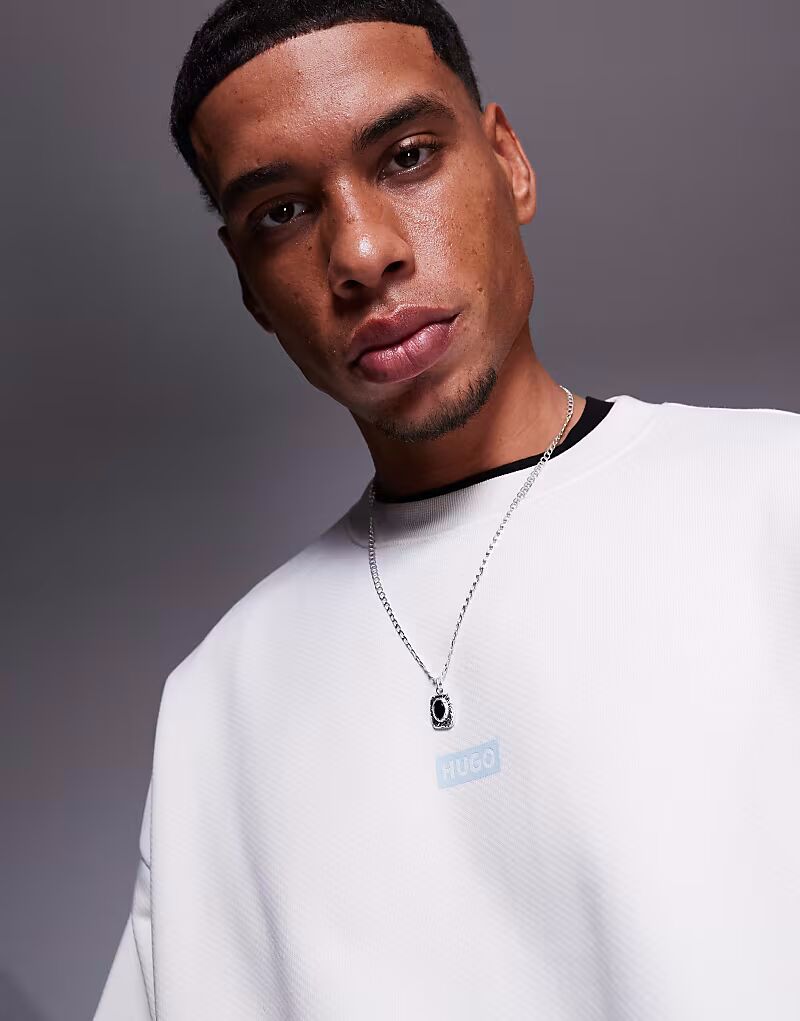Толстовка Hugo Blue с центральным логотипом в каменном цвете