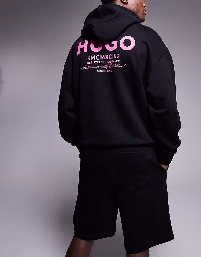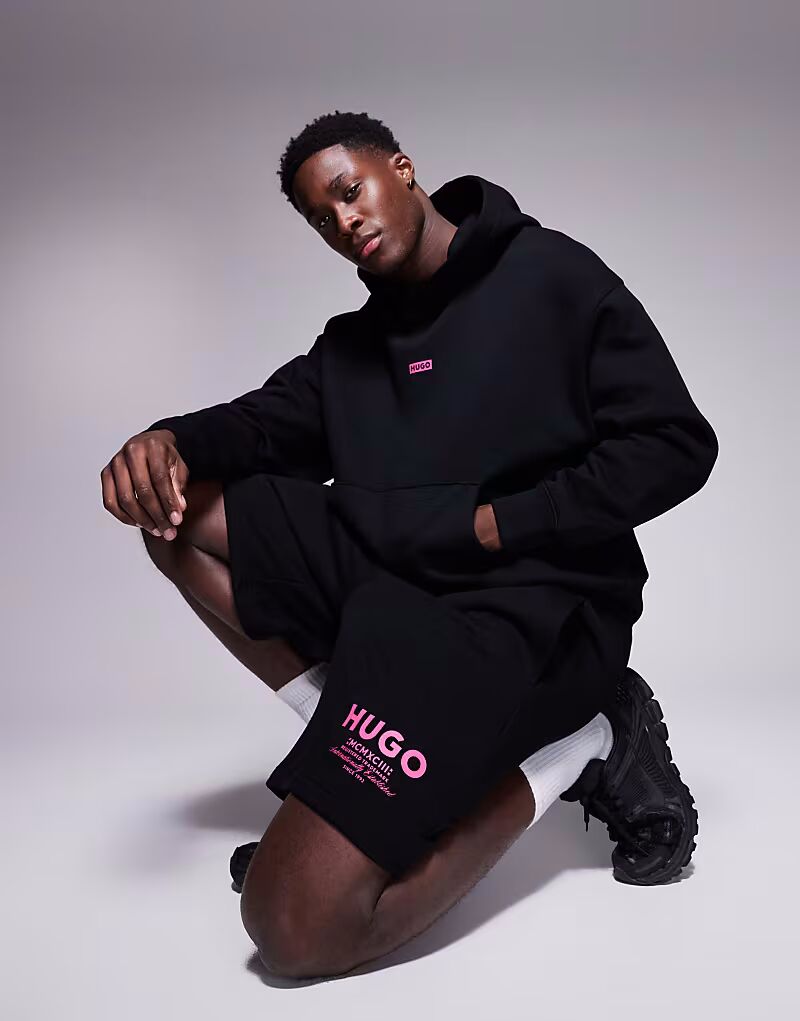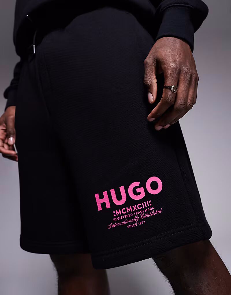Свободные шорты из джерси Hugo Blue черного цвета с розовым логотипом