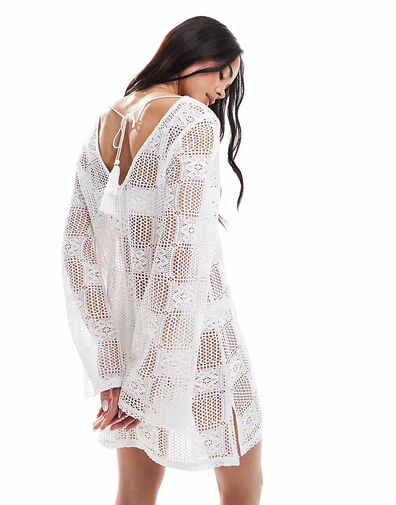 Платье New Look - Kaftan aus Spitze in Weiß mit Granny-Square-Design