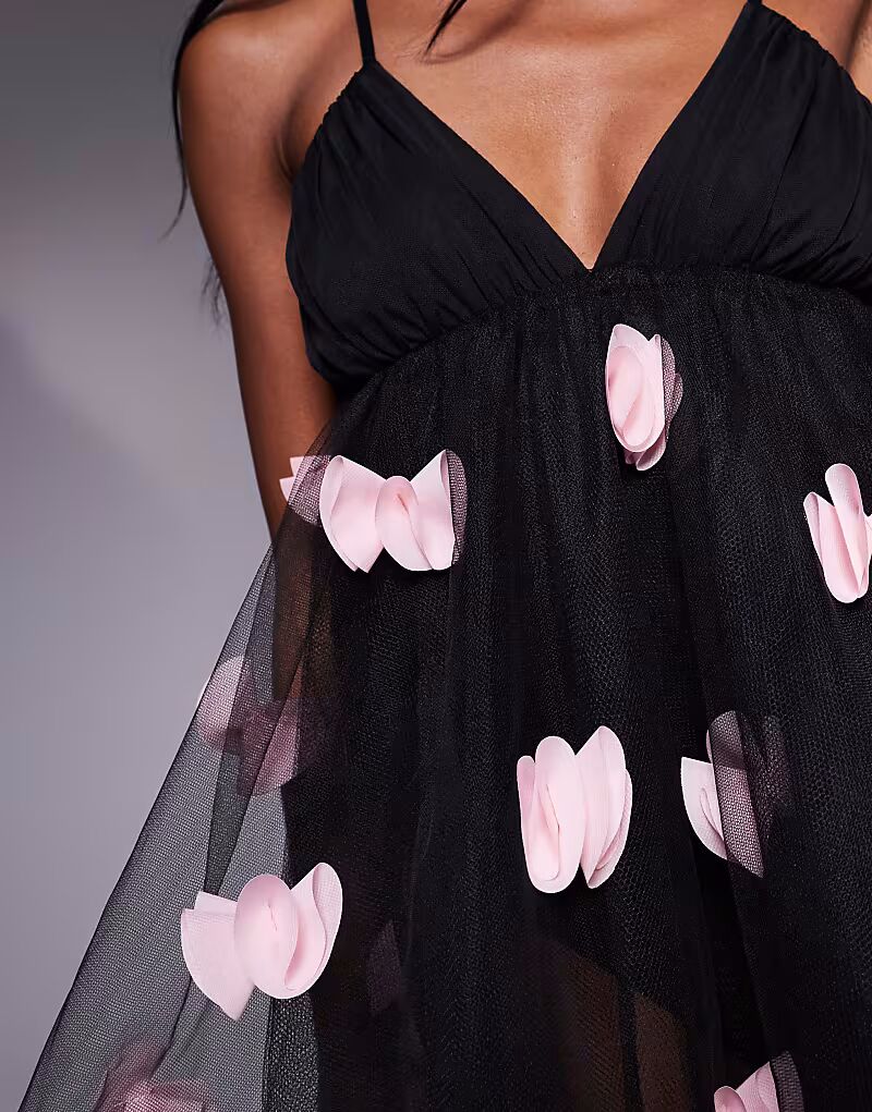 Jaded Rose - Черное мини-платье из тюля с 3D-украшениями в виде бантов