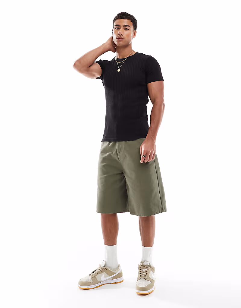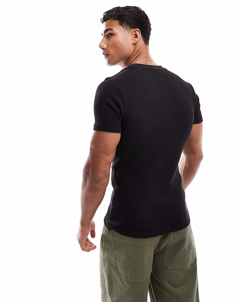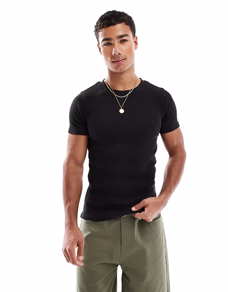Футболка Jack & Jones muscle fit в рубчик черного цвета
