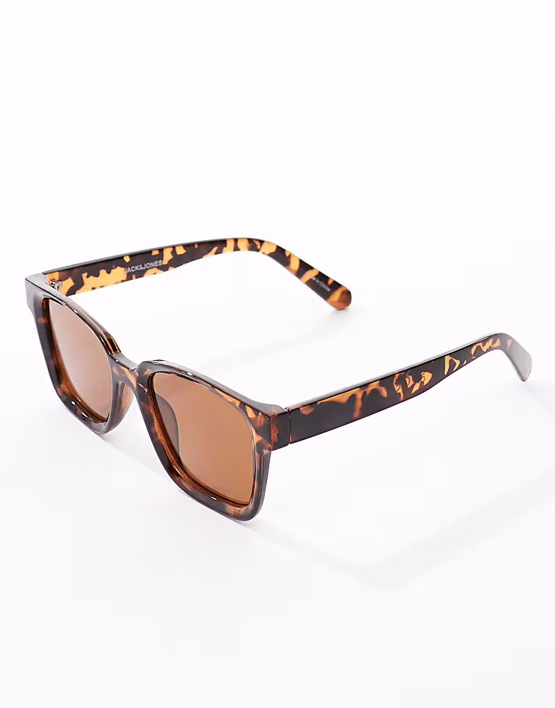 Солнцезащитные очки Jack & Jones прямоугольной формы в черепаховом цвете