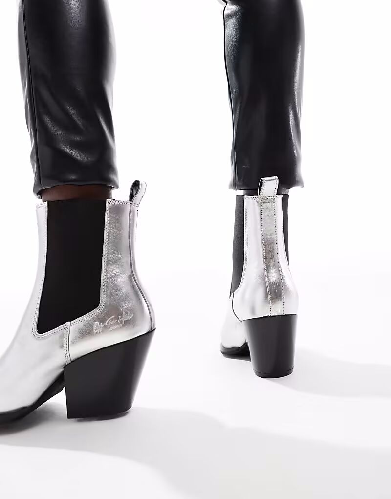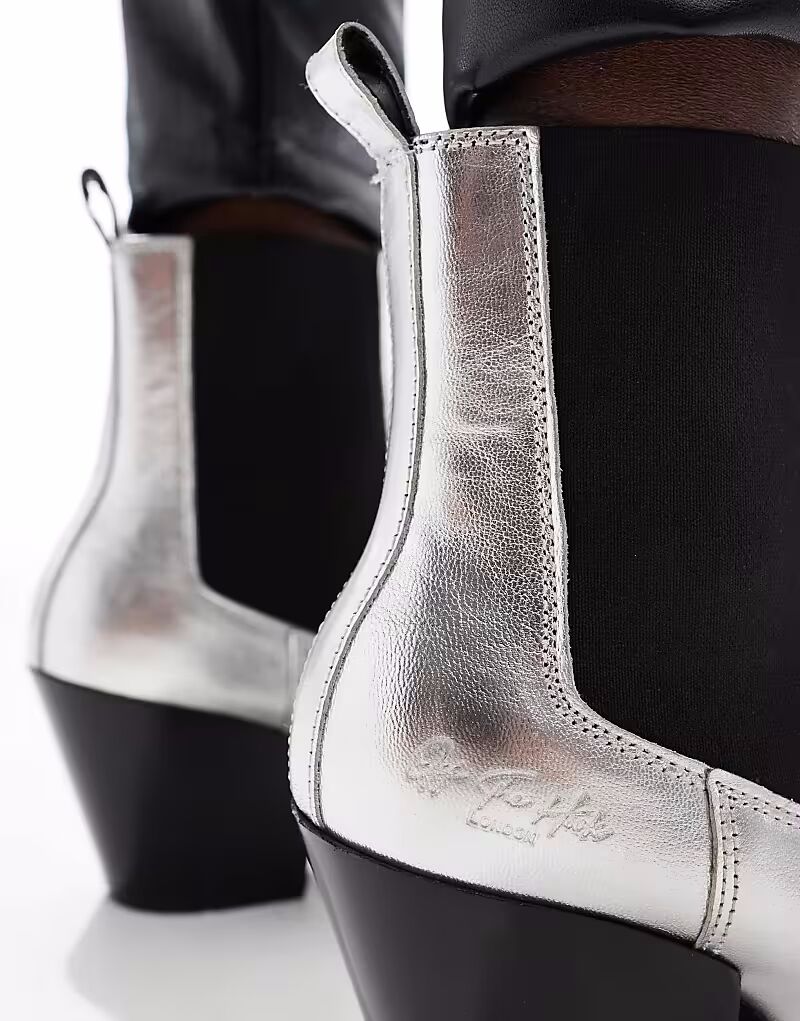 Off The Hook - Marlow - Ботильоны в стиле вестерн из серебристой кожи