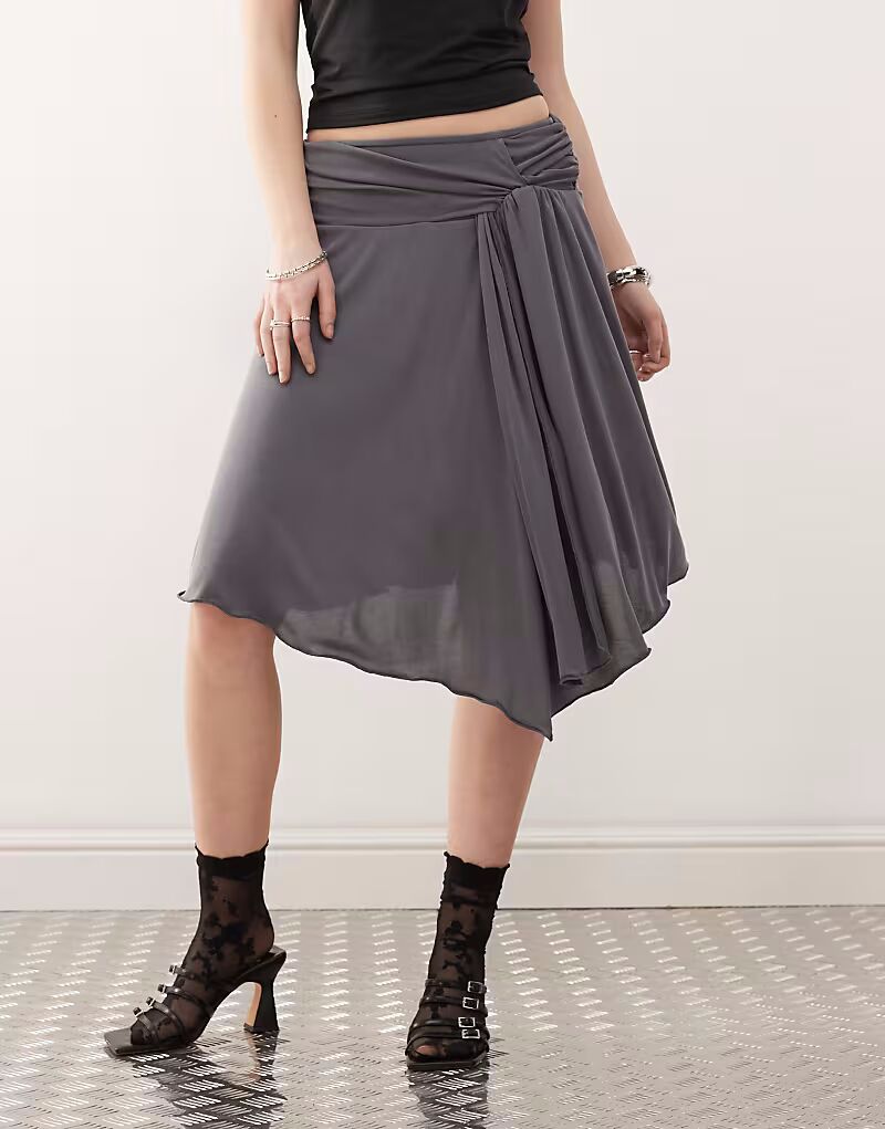 Юбка Motel Harlan Slinky Asymmetric Midi в сером цвете