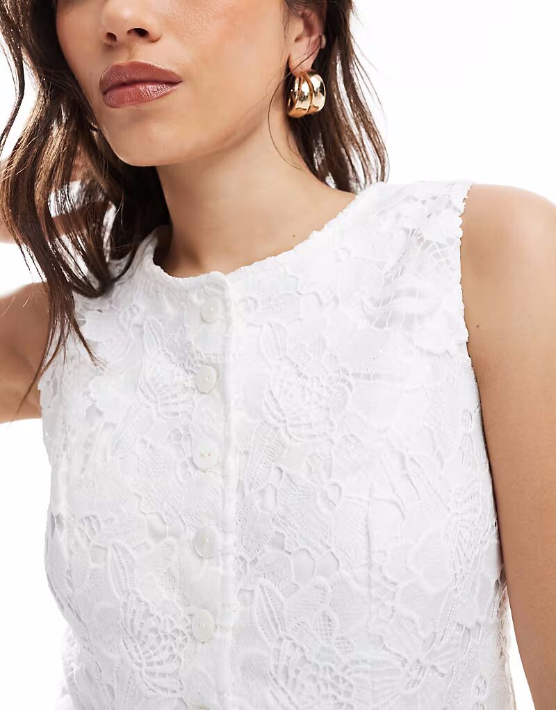 4th & Reckless Вышитый кружевной белый жилет на пуговицах
