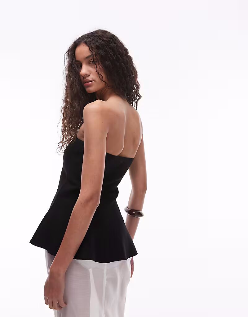 Топ-бандо с баской Mango плотной вязки черного цвета