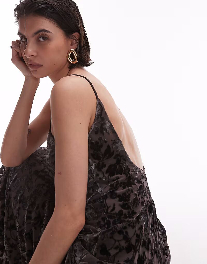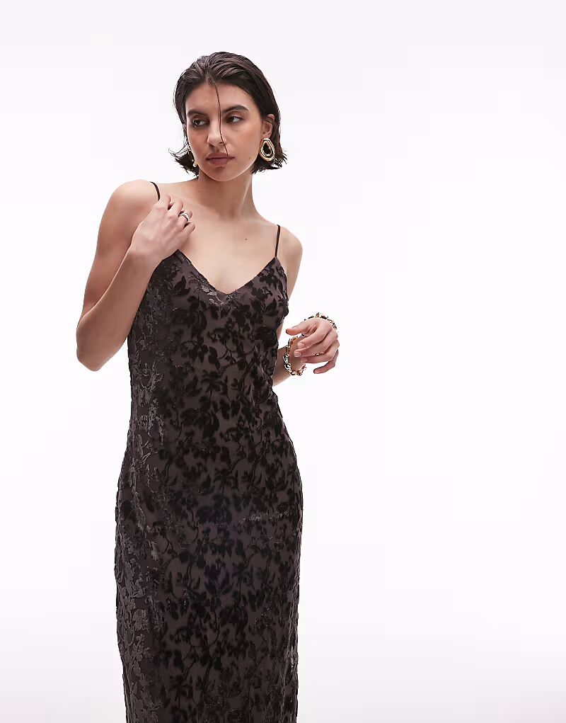 Длинное платье-комбинация Mango Devere коричневого цвета