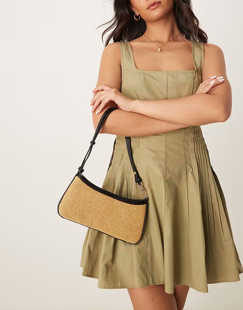 Сумка через плечо из рафии Mango с черной отделкой в ​​коричневом цвете