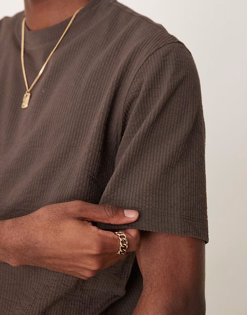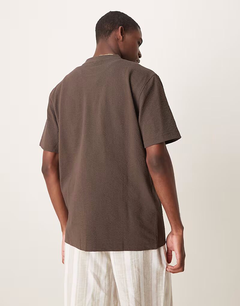Футболка Mango прямого кроя из ткани сирсакер коричневого цвета