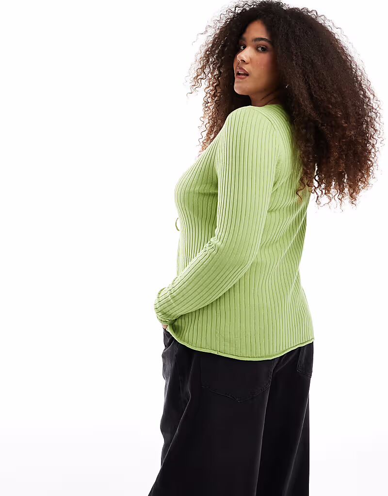 ONLY Curve - Зеленый ребристый кардиган с завязкой спереди