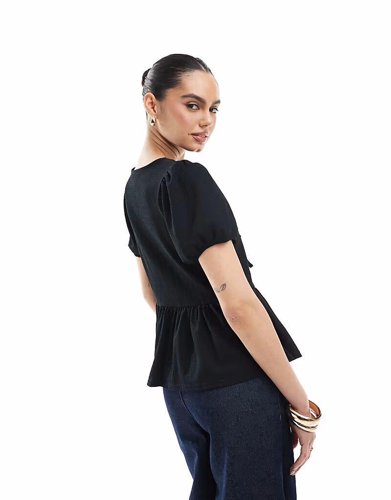 New Look - черный топ с завязкой спереди и баской 3 391₽