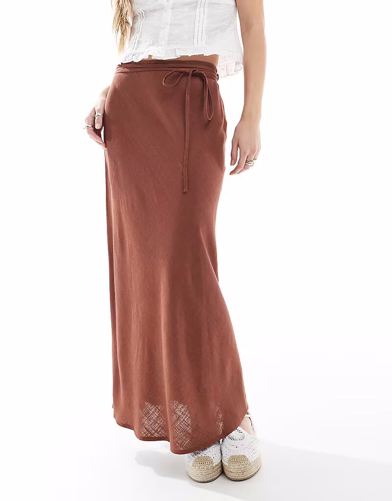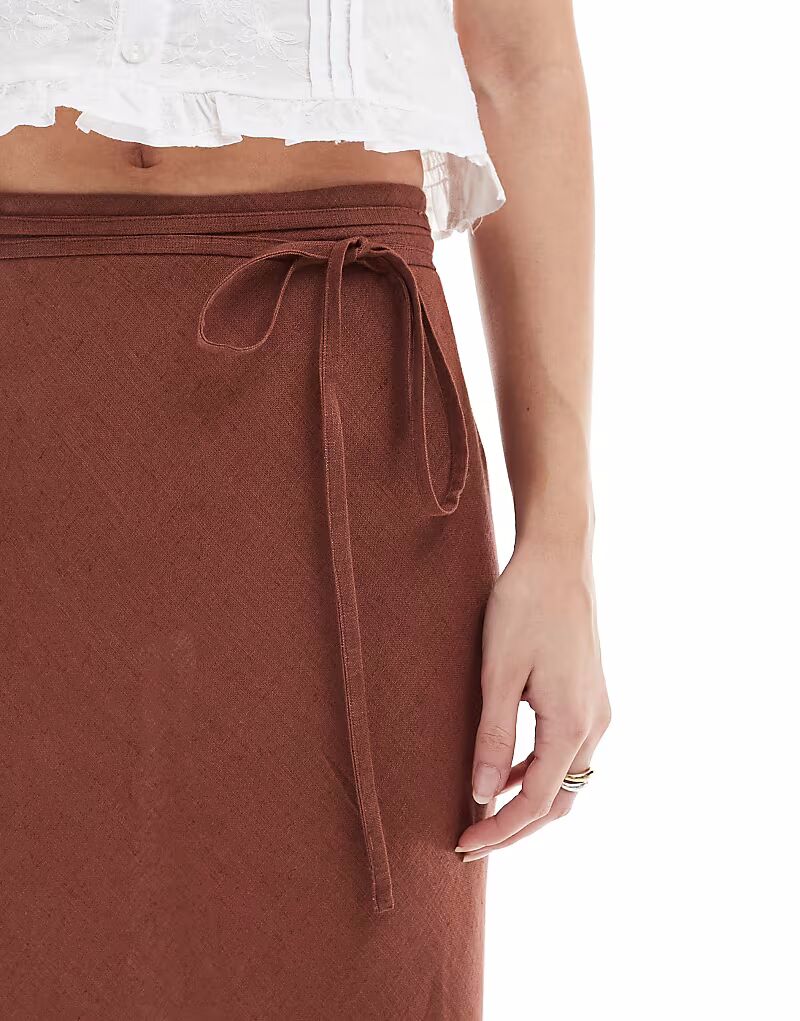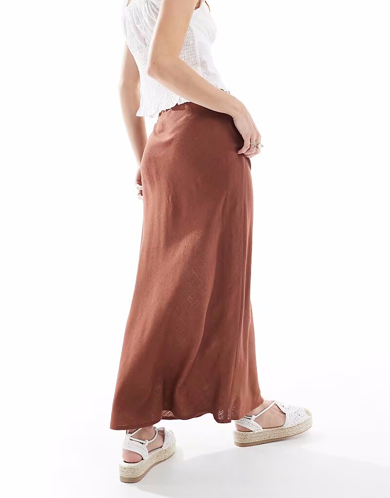 Юбка миди ASOS DESIGN из коричневого льна с косым кроем