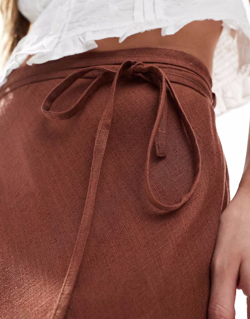 Юбка миди ASOS DESIGN из коричневого льна с косым кроем 4 400₽