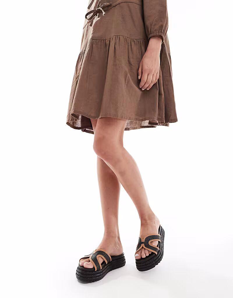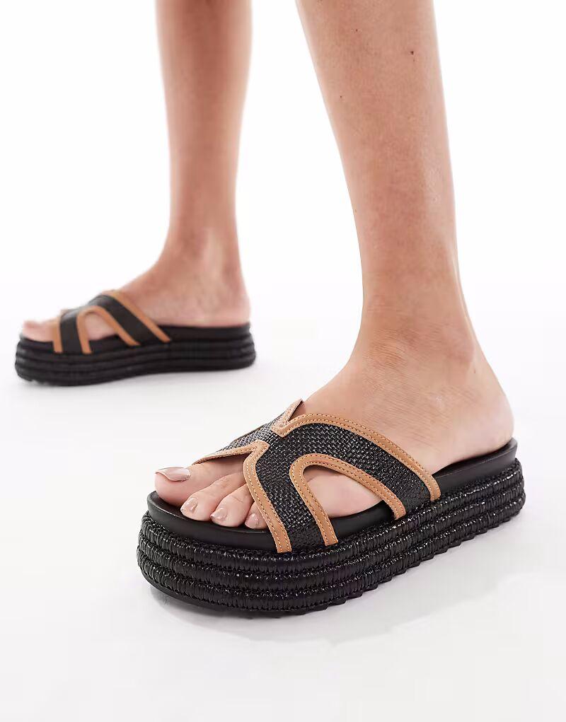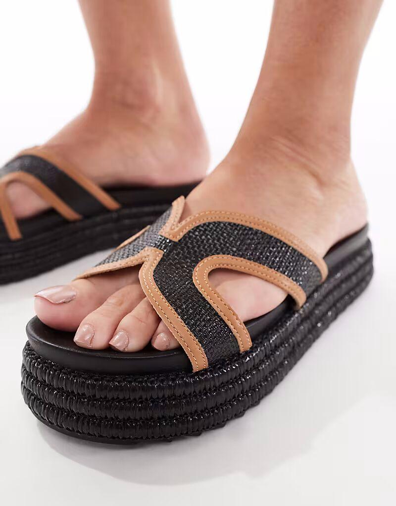 Сандалии SEQWL на плоской платформе с ремешком из черной рафии