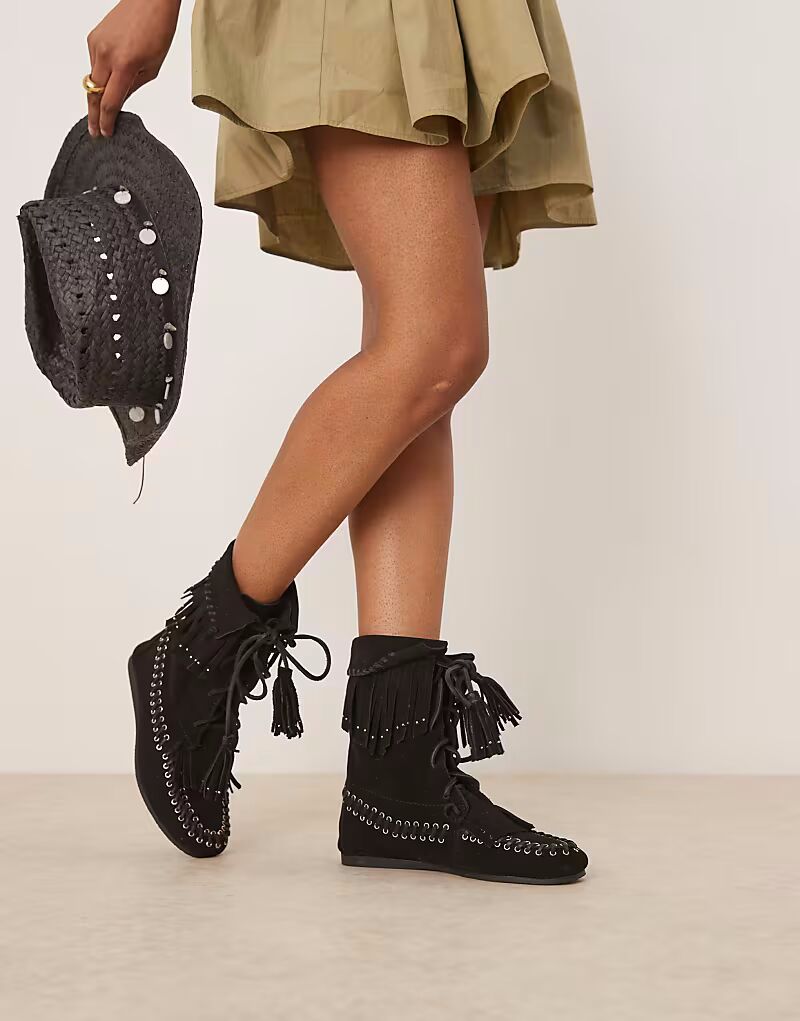 Ботильоны Anais с бахромой из черной замши от ASOS DESIGN