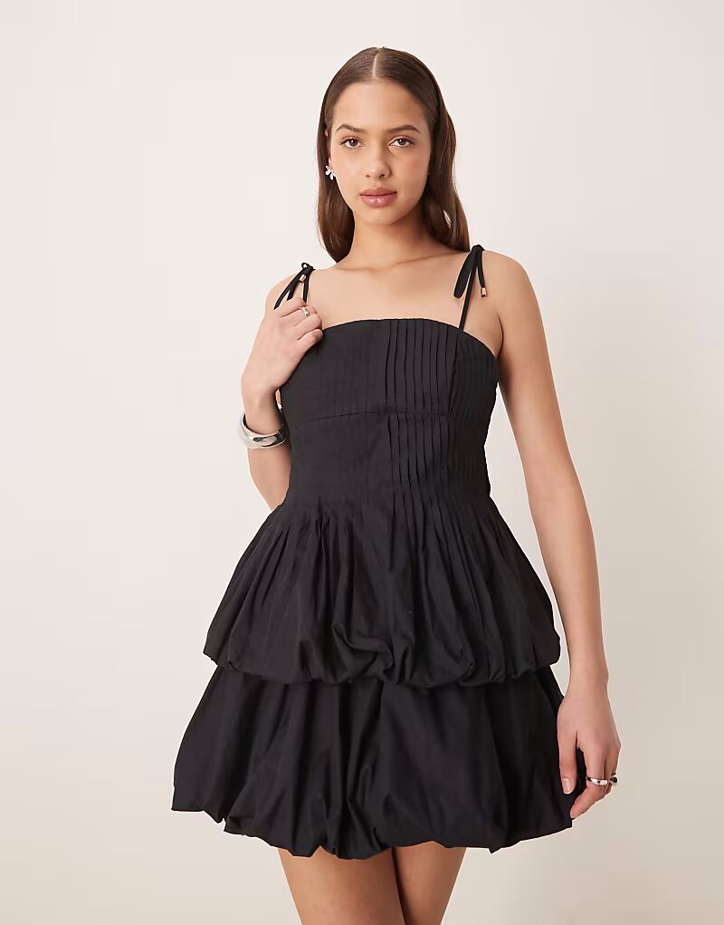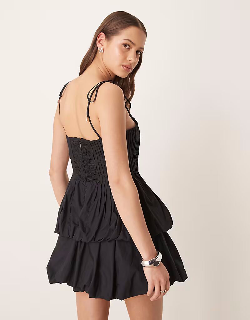 Черное мини-платье Forever New с завязками и двойным буфом по подолу