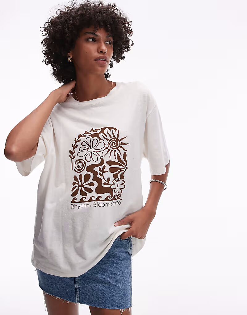 Футболка свободного кроя Rhythm Bloom Studio белого цвета