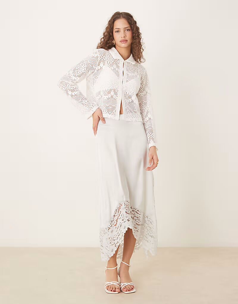 Вязание крючком: вязанное, открытое, фактурное полотно с узором, напоминающим ручную работу.