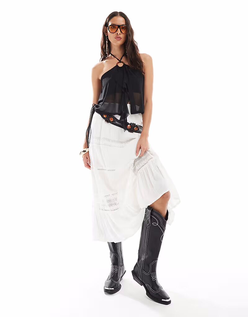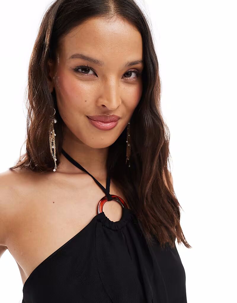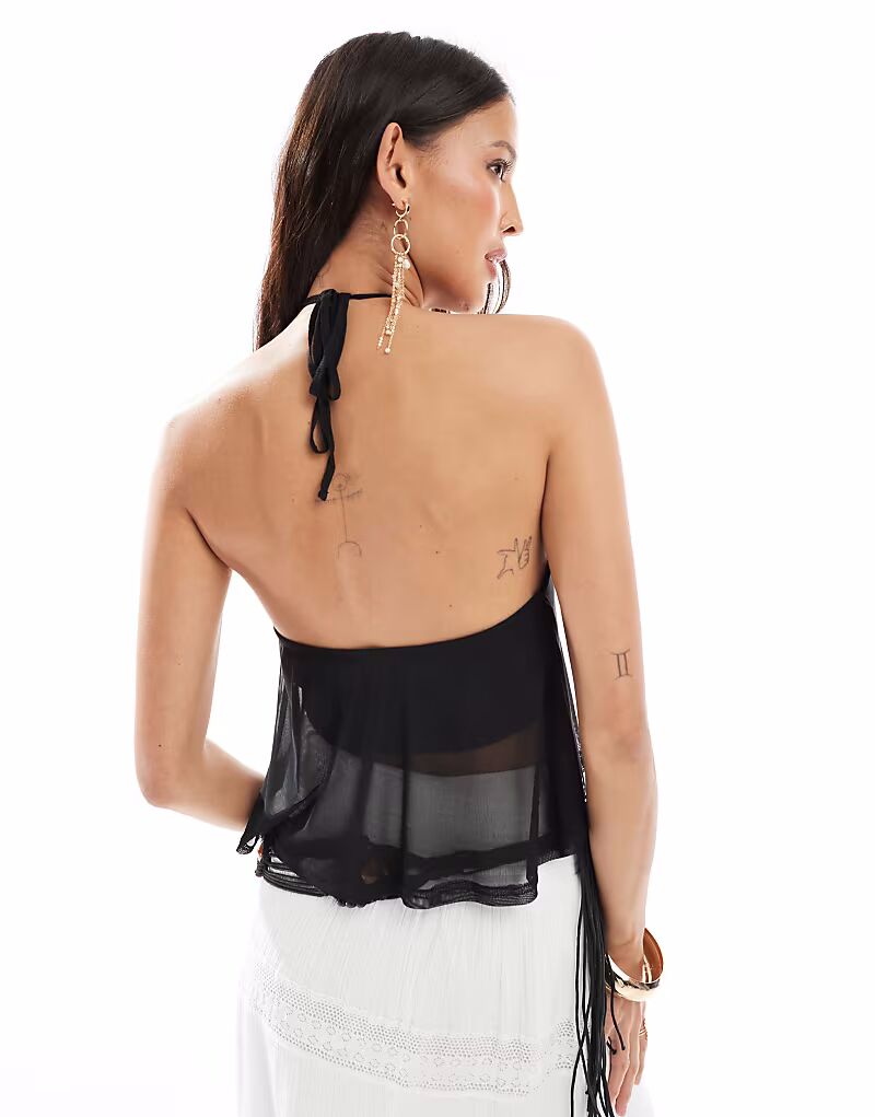 Топ Miss Selfridge с оборкой и разрезом спереди черного цвета