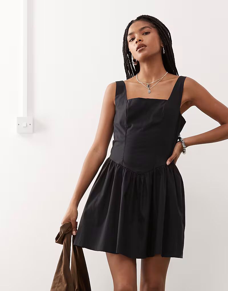 Мини-платье Monki с заниженной талией черного цвета 2 748₽
