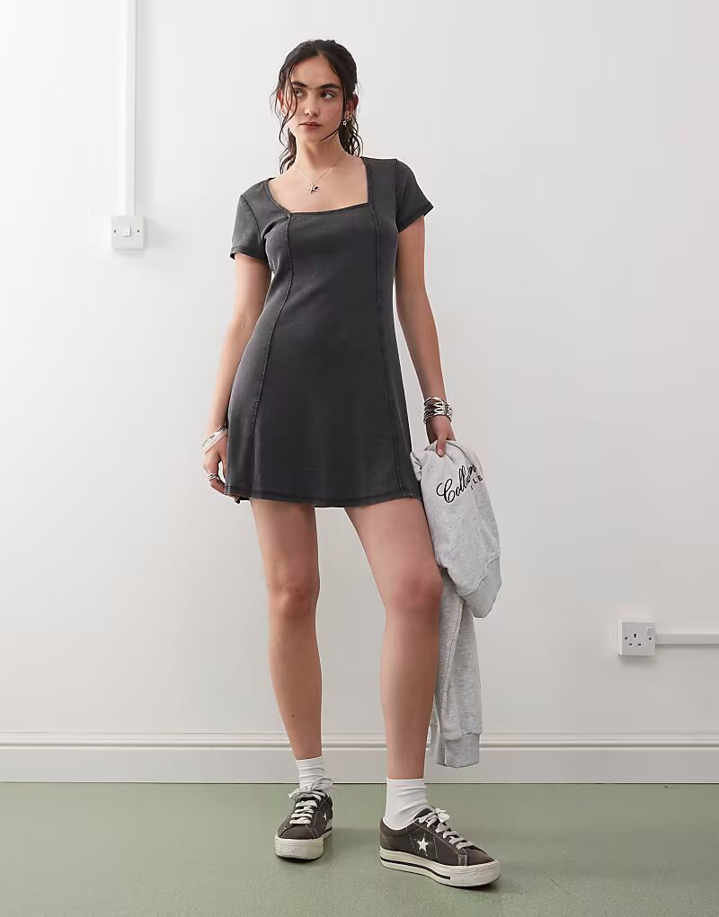 Мини-платье Monki в рубчик черного цвета эксклюзивно для ASOS