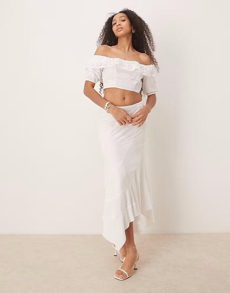 Укороченный топ с оборкой на шее цвета «кремовый» Narrated
