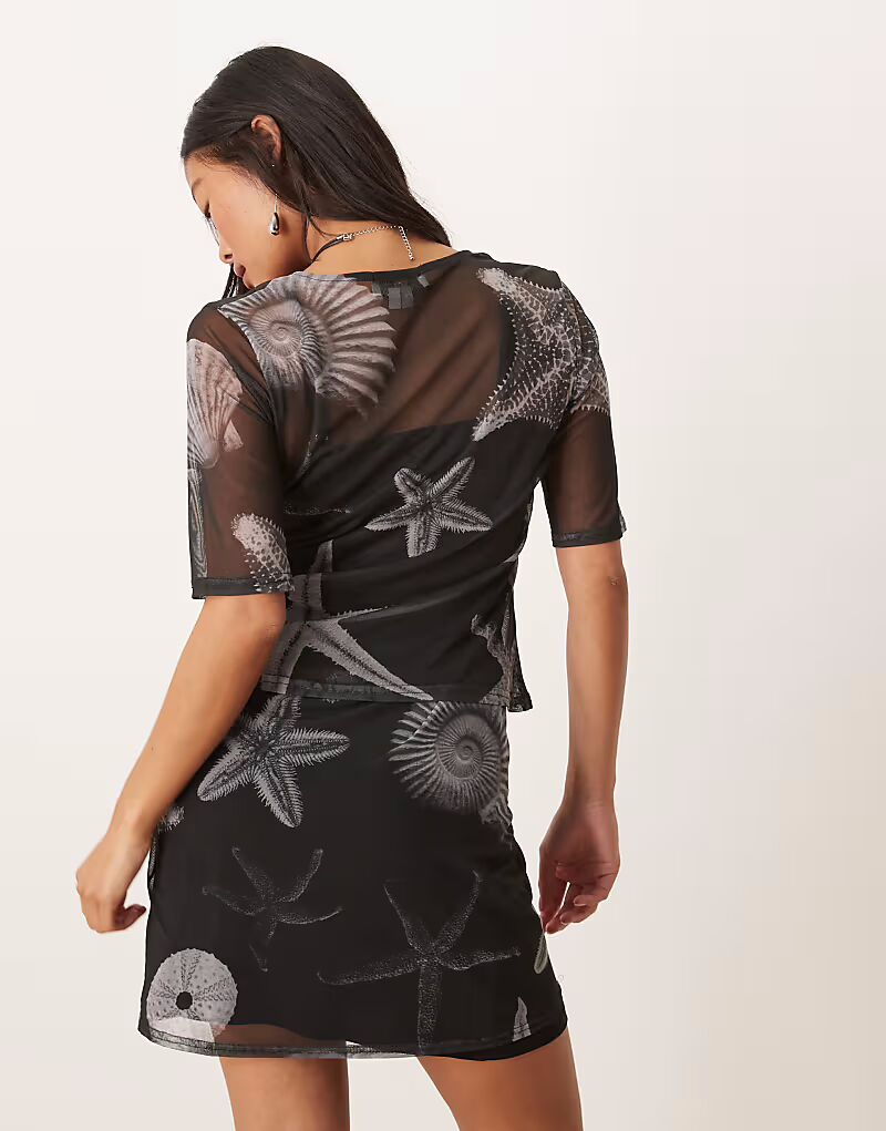 Мини-юбка с сетчатым принтом Never Fully Dressed Petite черного цвета