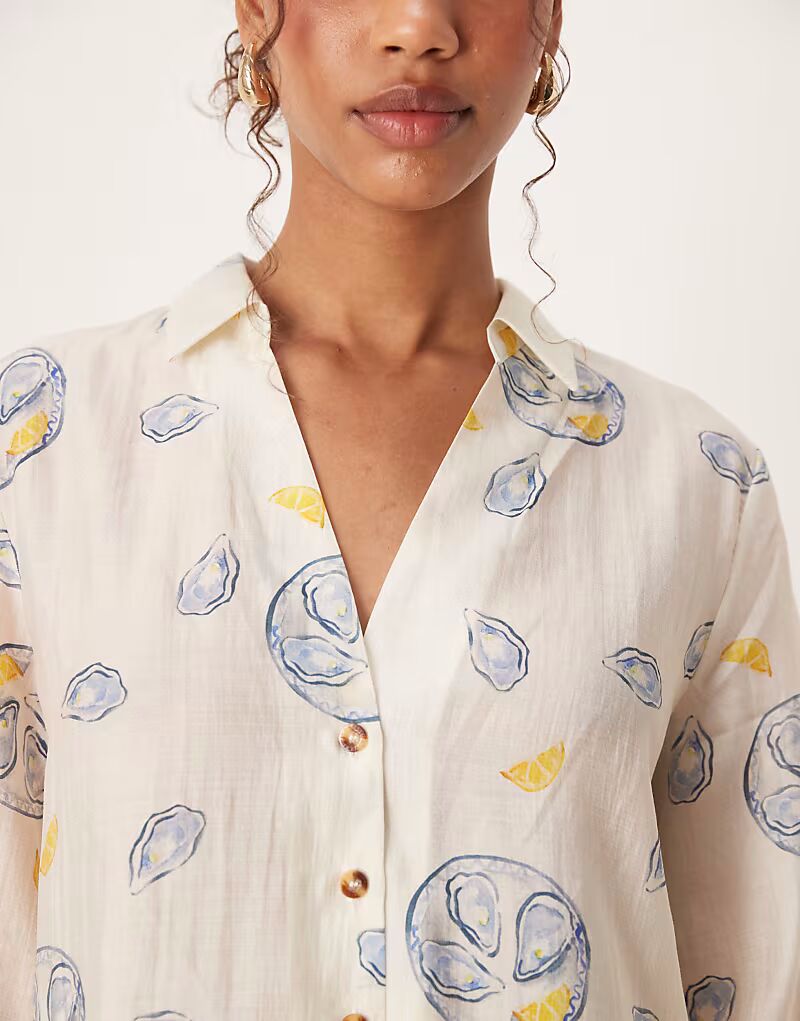 Рубашка свободного покроя Never Fully Dressed с принтом «устричный лимон»