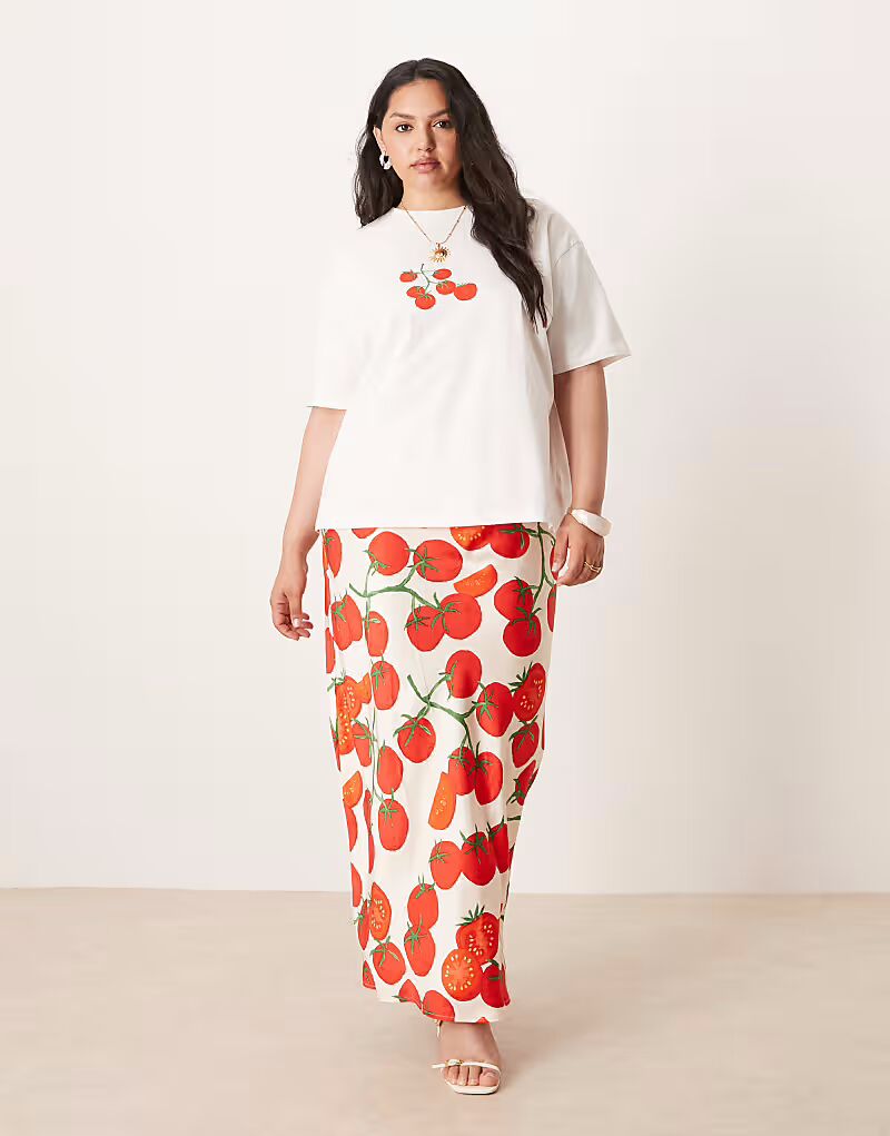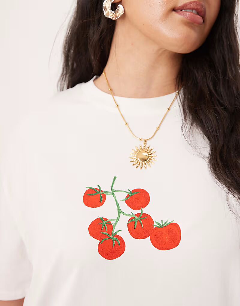 Футболка Never Fully Dressed Plus с принтом томатов, белая