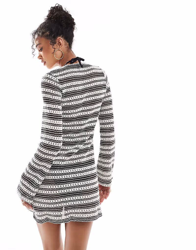 Платье New Look crochet stripe kaftan in black and white 6 257₽