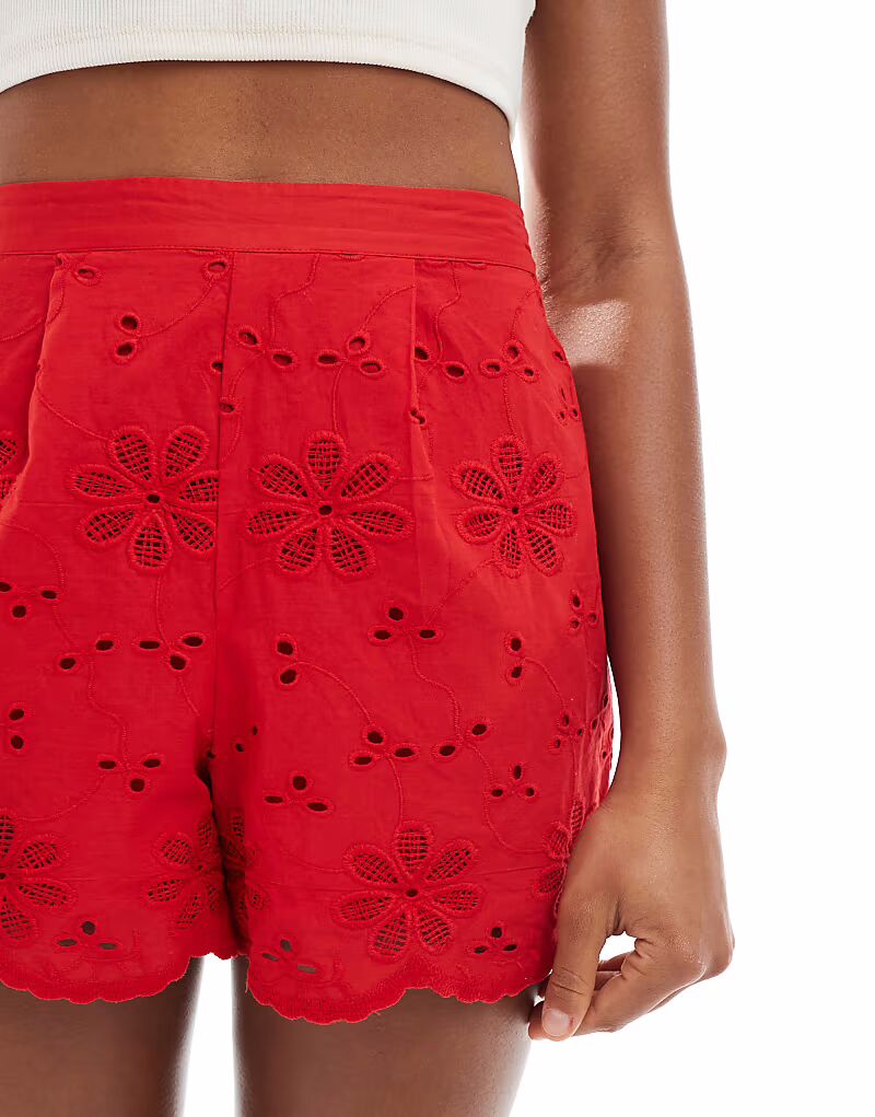 Короткие вышитые шорты New Look красного цвета