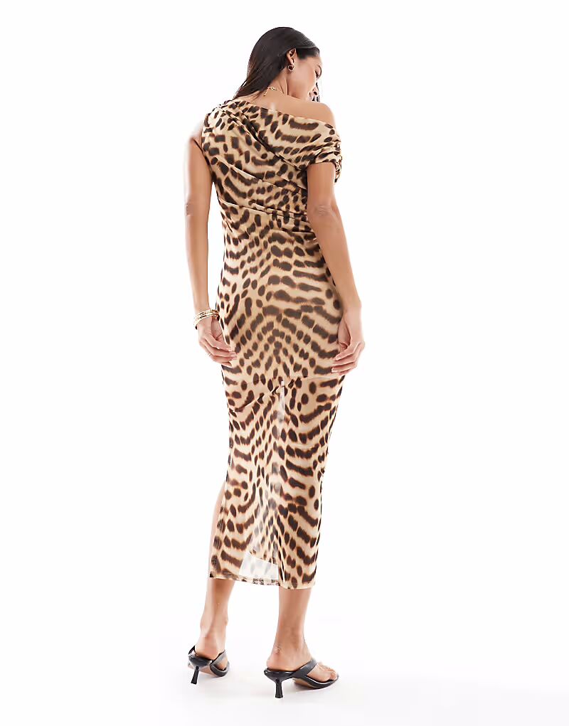 Платье миди New Look с приспущенными плечами и леопардовым принтом